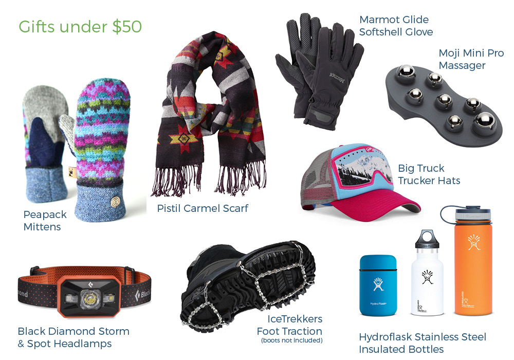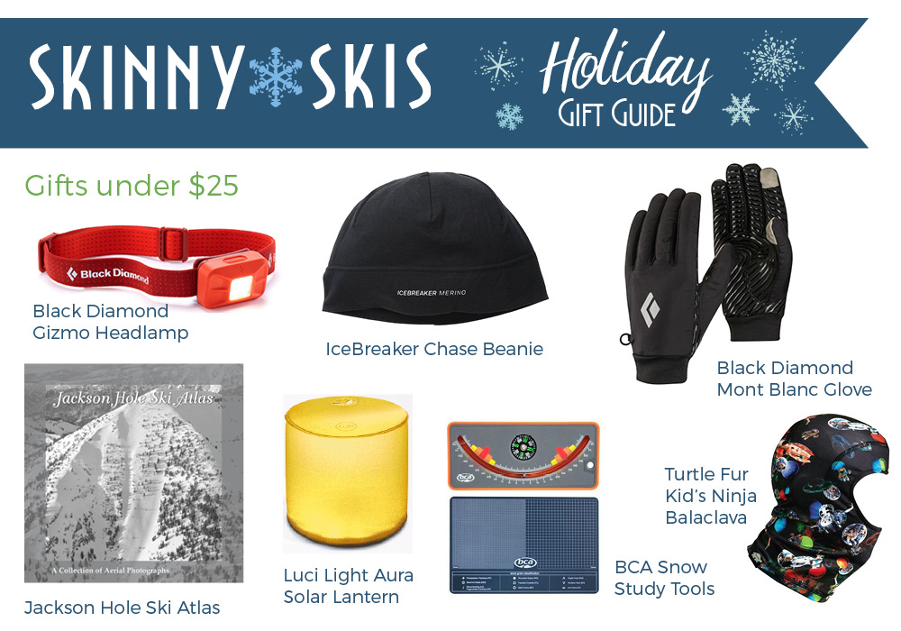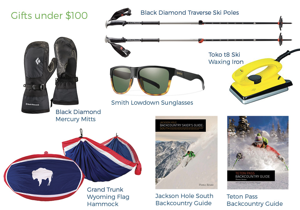 It’s a busy season here in Jackson Hole, and the giving season as well. We’re here to make giving easier, with a great selection of fun and useful items for outdoor enthusiasts and mountain town denizens. Below you’ll find items under $25, $50, and $100, as well as apparel suggestions for him and her, in technical activewear and more casual apparel for around town. We carry great clothing brands; Patagonia, Arc’teryx, Marmot, Salomon, Mammut, Swix, Black Diamond, and Outdoor Research. Ski gear from Dynafit, Rossignol, Fischer, Voile, Madshus, Alpina, G3, Black Diamond, Ortovox, BCA, Mammut, Smith Optics, and more!