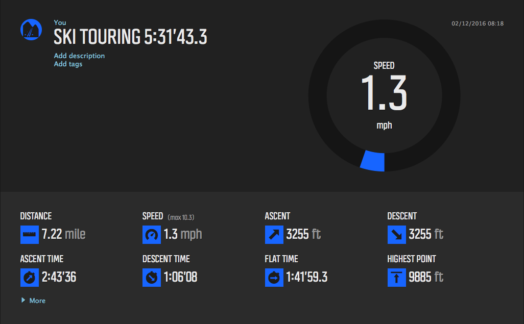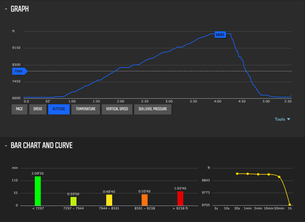 Suunto GPS Watches allow you to record an event (called a move) and upload them to their free MovesCount Website. The watch will record many details about the event, including: time, time spent ascending, time spent descending, average speed, max speed, altitude, and many others. This watch can keep track of your treks, climbs, bike rides, and other outdoor adventures. If you like to keep track of your adventures for serious data crunching or just reminiscing about great days out, MovesCount is your new friend!